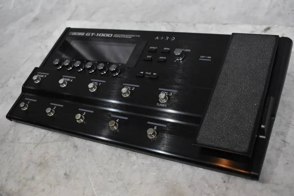 GT-1000は、BOSS独自の最新音響技術を搭載したフラッグシップクラスのマルチエフェクターで、高品位なアンプモデリングと多彩なエフェクトを備えている点が特徴のモデルです。