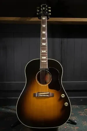 J-160Eは、ギブソンの中でも個性的な存在として知られるエレクトリックアコースティックギターで、温かみのある箱鳴りと扱いやすい電装系を兼ね備えたモデルです。