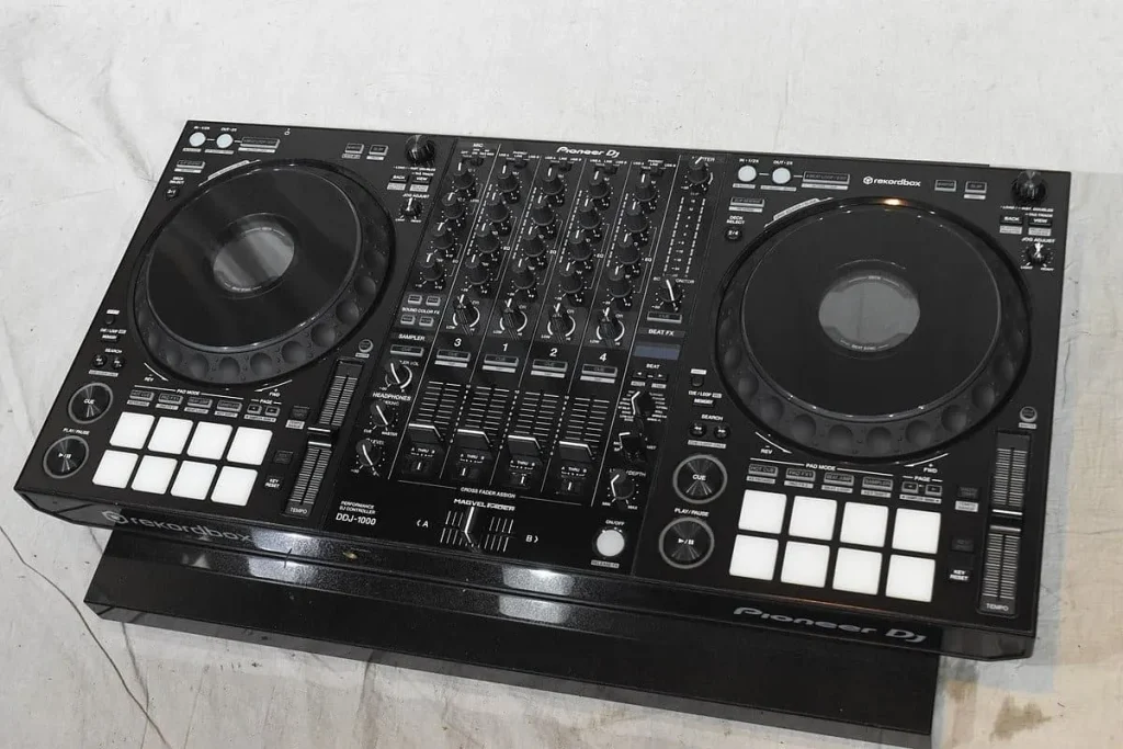 DDJ-1000は、フルカラー表示のジョグディスプレイや豊富なエフェクトを搭載し、クラブさながらのプレイ環境を自宅やイベントでも再現できます。中古市場でも非常に人気の高いモデルです。